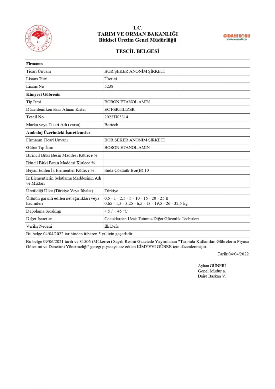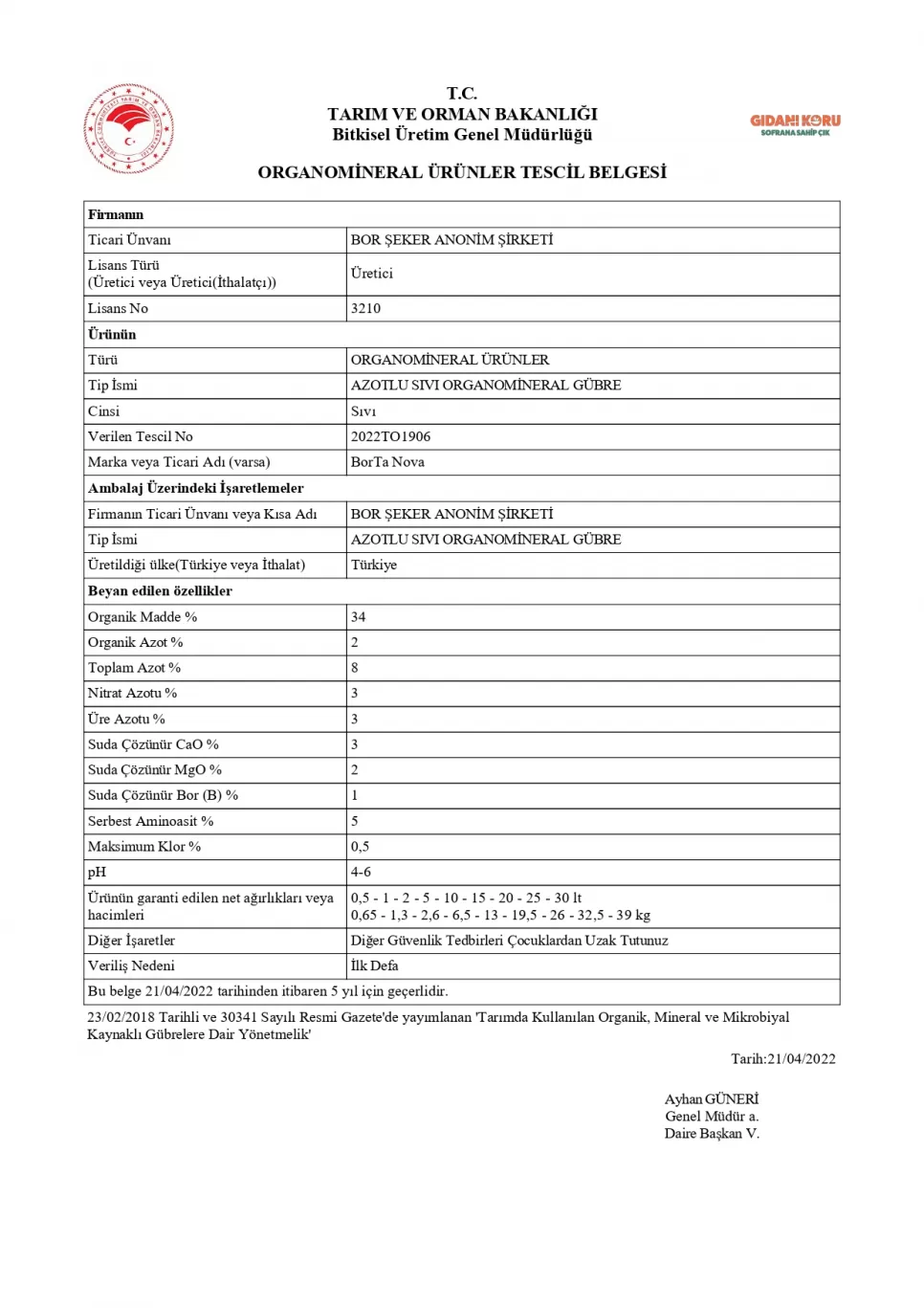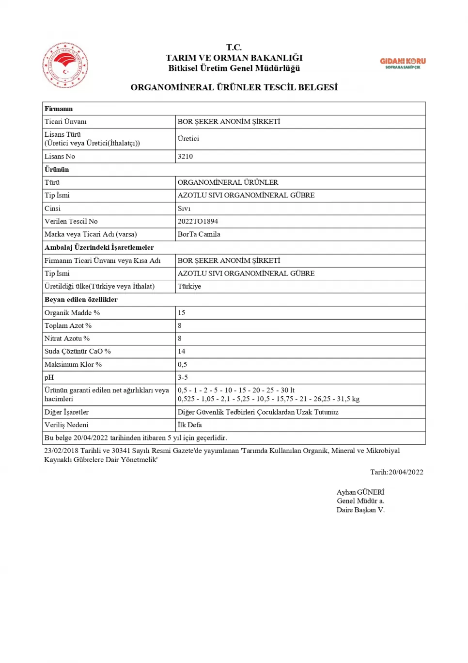 Tescil Belgesi BorTa MixGold
