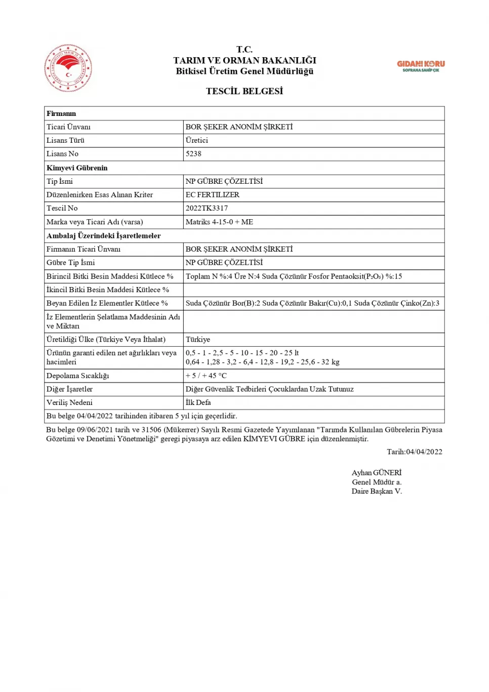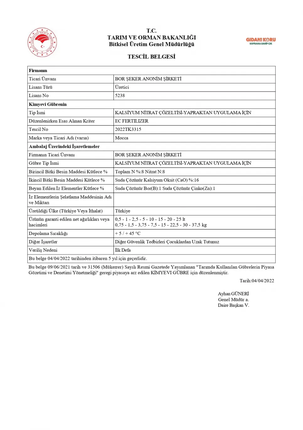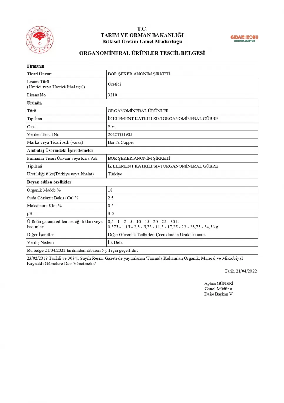 Tescil Belgesi BorTa MixGold