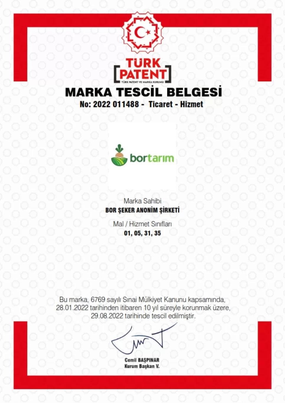 Tescil Belgesi - BORTECH